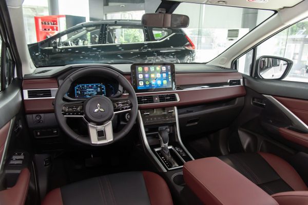 Nội thất hai tông màu Đỏ – Đen thể thao, sử dụng vật liệu da cao cấp có khả năng giảm hấp thụ nhiệt. Xpander Cross 2025 được trang bị màn hình giải trí 9 inch sắc nét, kết nối với điện thoại thông minh qua Apple CarPlay/Android Auto & MM-Link. Phanh tay điện tử (EPB) đi cùng giữ phanh tự động (Auto Hold) tạo nên không gian thuận tiện, gọn gàng và tăng thêm trải nghiệm an toàn khi lái xe.